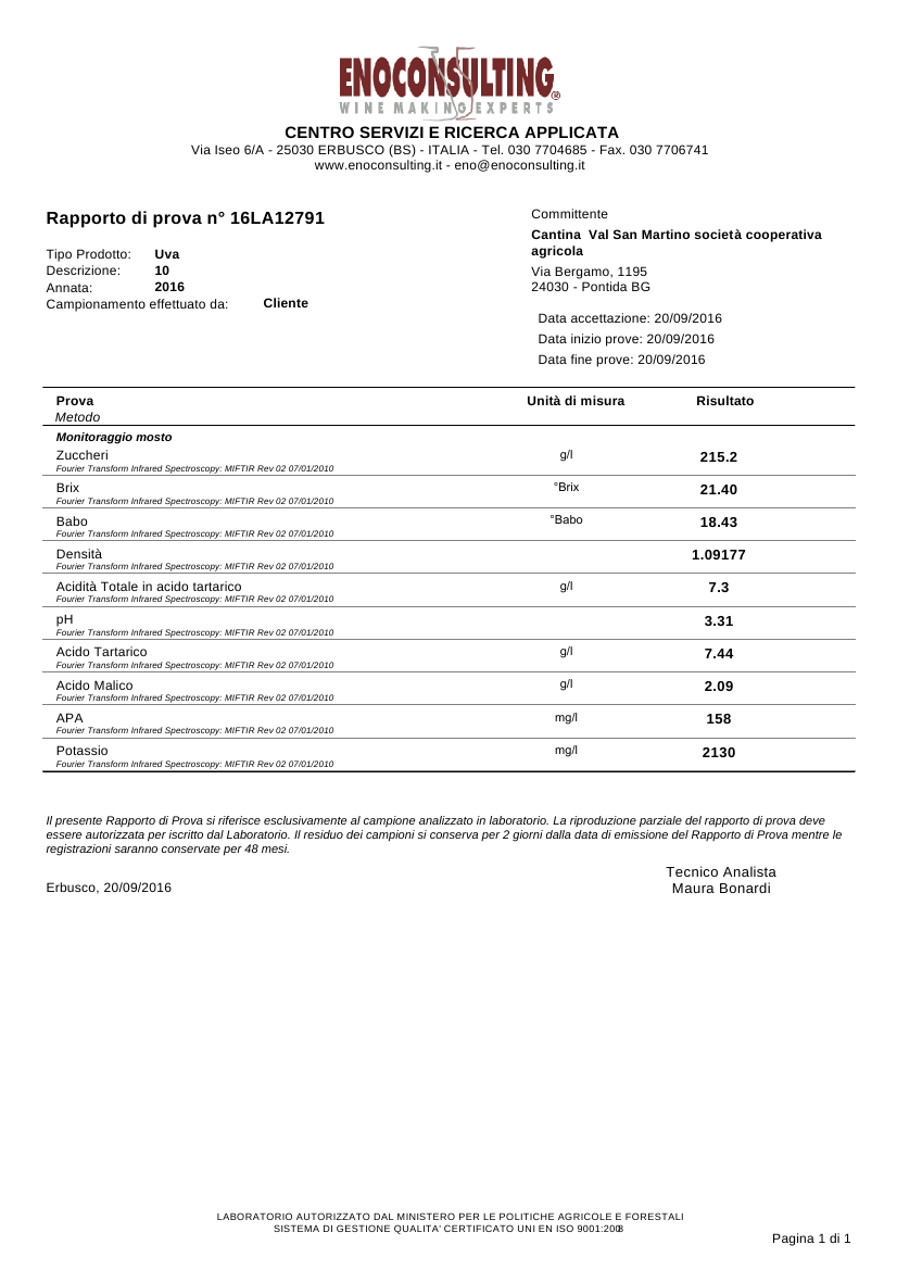 Uva sana, il grado alcolico indica che siamo prossimi alla vendemmia, aspettiamo la completamento del ciclo di maturazione dell’acino e quindi del vinacciolo.
